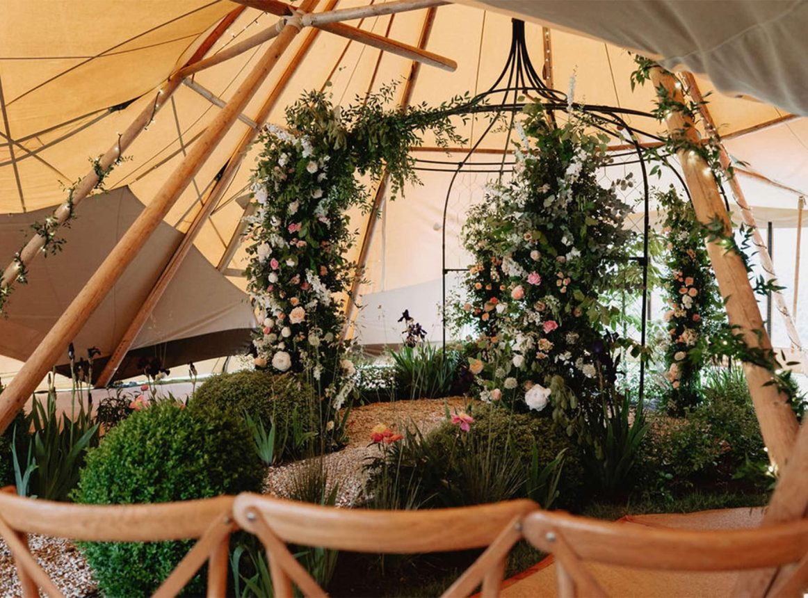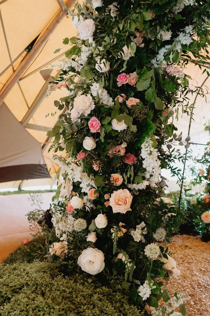 Ben & Tanja’s wedding was a beautifully personal celebration, held in the gardens of their Cotswolds home and styled with a soft palette of pink and ivory throughout. A three-tipi configuration created a relaxed yet considered setting for the day, thoughtfully positioned to frame their existing garden arch, which was transformed into a breathtaking floral installation by Fresh Flower Company.