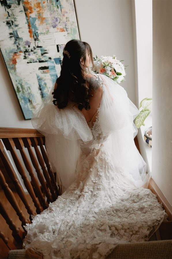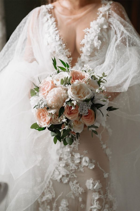 Tanja looked incredible in the most exquisite tulle and lace wedding dress, featuring delicate removable sleeves that allowed her look to transition seamlessly from day to evening.